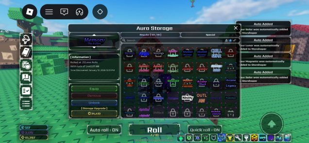 ✅ Имеется 14 глобал аур и так же редкая аура на 1 миллиард «Memory»