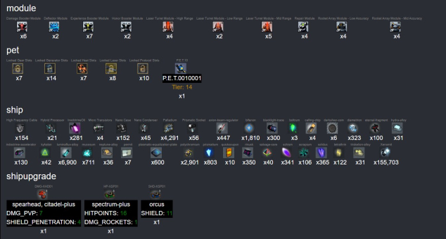 Сервер: (FR) 1Краткое описание: ⚔️🔥ФРАНЦИЯ 1-2-3-4⭐Уридиум: 1.242.966⭐9 ДРОИДОВ + 24 HAVOC⭐30 ДОСЬЕ ПИЛОТА🔥⚔️