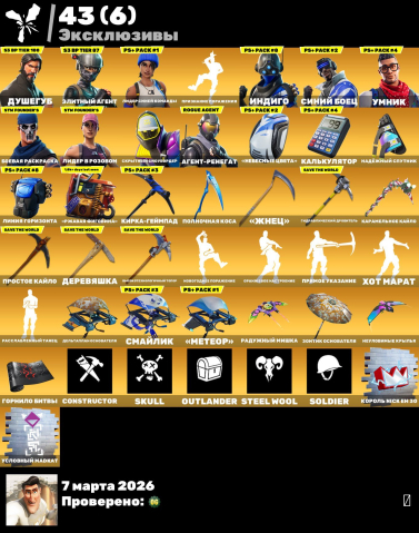 Краткое описание: [PC] 224 СКИНОВ🌀TAKE THE L⭐ДУШЕГУБ🌙ЭЛИТНЫЙ АГЕНТ💥БОЕВАЯ ПОДРУГА🌪️КВОТЕРБЕК🎭РЕНЕГАТ🌊450ВБ