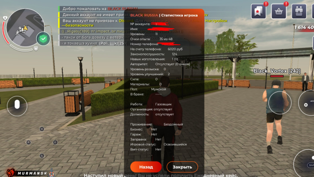 Подробное описание: BR RP Murmansk | 11 lvl | 1.600.000 | 2 авто (гос 1.4кк) | 257 доната | TG DS ОТВЯЗАНЫ