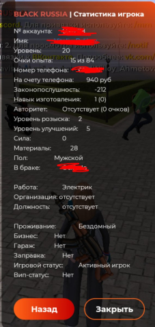 ✨ BR RP Khabarovsk ✨ 20 LVL | 3 авто ( гос 4кк) ✨ VK DS ОТВЯЗАНЫ✨, 20 уровень, валюты на балансе 16000 к, стоимость имущества 4000000 к