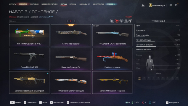 Мед :Kel-Tec KSG летние игры, MAG-7, Browning Cynergy CX ,PA Garibaldi 12GA наследие, Калашников MP-155 Ultima легион, Сайга -12 С, Bienelli m4 custom персек