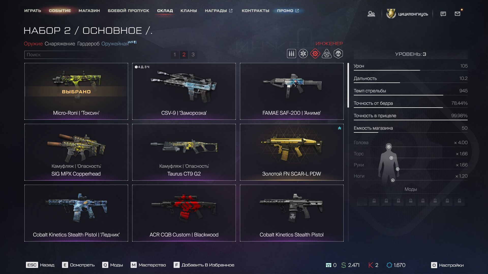 инж :Micro-Roni токсин, Famae SAF-200 Аниме ,SIG MPX Copperhead ,Taurus CT9 G2, Золотой FN SCAR-L PDW, Gilboa Snake DBR барс