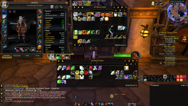 НА ПВЕ остальные скрины рог куски т2\т0.5 в банке куски т1 + репа показаны на скринах, всё почарено (8аги шапка, +4 аллстат чест, 9 стр брасы,7аги перчи, 8 аги штаны, 7 аги боты, +5дмг пердишн, +15 аги кхт), сделана полная цепочка кв на т 0.5, 100% маунт (механокурица), инжа 300\300 майнинг 300\300, кукинг 300\300 +60 дварф холипал сине\зеленый гир гербализм 300\300 алхимия 300\300 60% маунт +60 найтэльф рог пререйд 300\300 гербализ 278\300 энчант 60% маунт!
