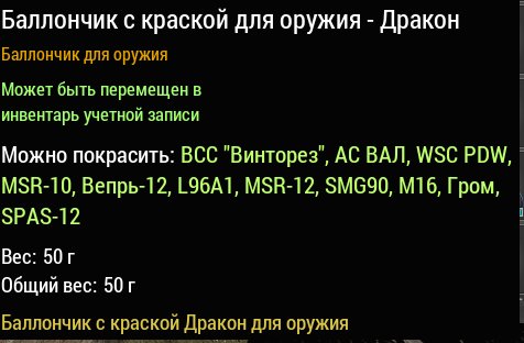 Сервер: RU-5Краткое описание: Баллончик с краской для оружия- Дракон (любой сервер)