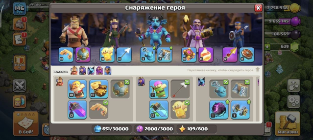 Уровень Ратуши: 16Краткое описание: 🟨🔥🔥【 TH 16 】⚡ 146 LVL ⚡💎 650+ ГЕМОВ 💎【ГЕРОИ — 65/85/51/30】⚡ С ПОЧТОЙ ⚡ СКРИНЫ 🟨🔥🔥