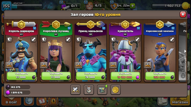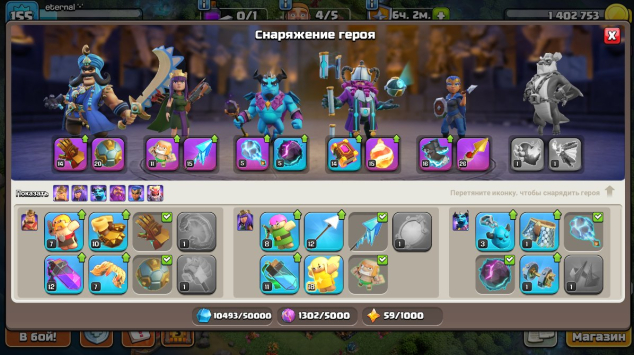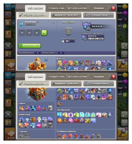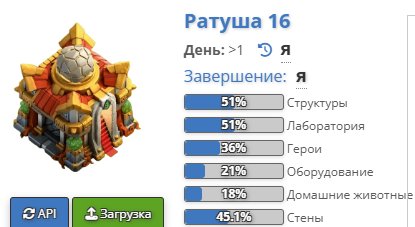 Уровень Ратуши: 16Краткое описание: 📊16 ТХ 51% | 8 ДС📊🚀155 LVL🚀🌟ГЕРОИ: 63|62|44|46|41🌟☕4 СКИНА☕💧8 ЭПИК СНАРЯГ💧🏅3 ОФОРМЫ🏅