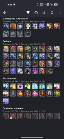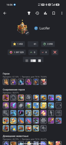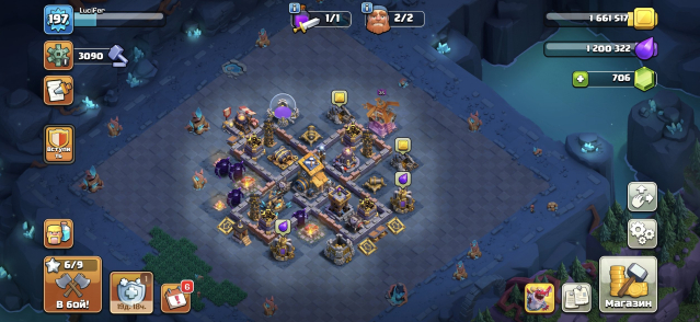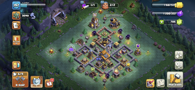 Уровень Ратуши: 16Краткое описание: 🎅🎁16TH(197 Ур.)🎁⭐1452 ЗВËЗДЫ⭐79-80-55-61-36-1📜29 СНАРЯГ🔮7 СКИНОВ🎎СМЕНА НИКА 500🟢ЗАБОР 15-16 ЛВЛ🌸🪙