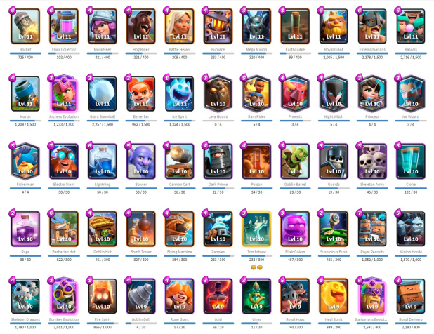 ⚡Быстрая ВЫДАЧА⚡ХОРОШАЯ ПРОКАЧКА И ПИНЫ, 10 ЭВО, 17 арена, 55 уровень, 10300 кубков, 121 карт, Есть