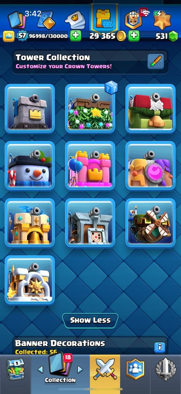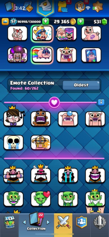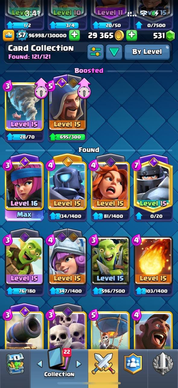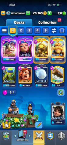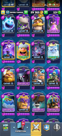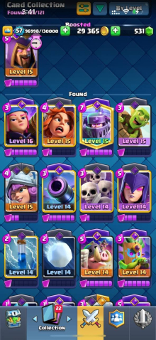 Краткое описание: 10 к кубков, 57 лвл, колода с ракетчицей, 1 16 лвл + 8 15 лвл, 14 эволюций, 60 эмодзи, описание👇