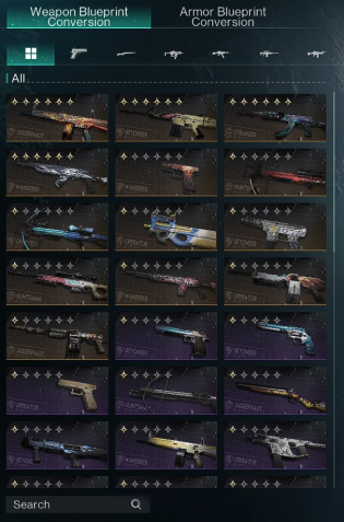 4 — 6 star Weapon Blueprints (3 максимальных чертежа на ганы).