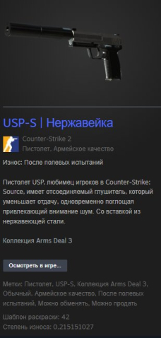 Краткое описание: 🔥【USP-S | Нержавейка】🔥 ☑️ 【НИЗКАЯ ЦЕНА】-【 СКРИН В ОПИСАНИИ】☑️