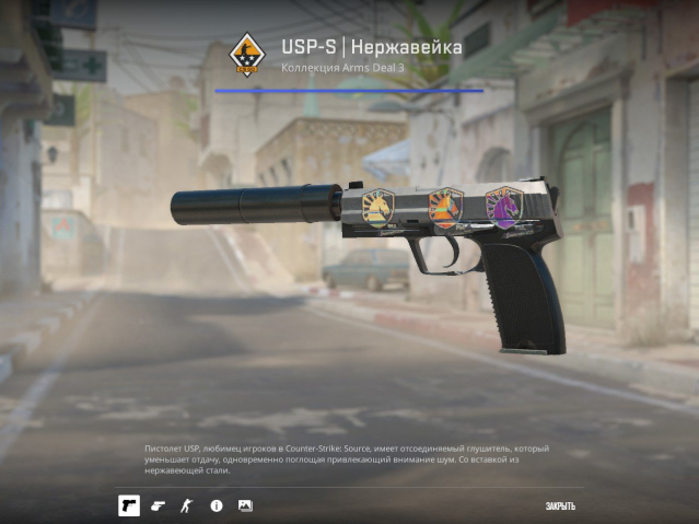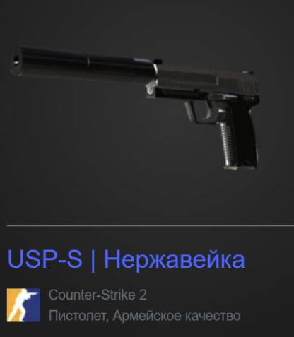 Краткое описание: USP-S | Нержавейка | Состояние: После полевых испытаний | Степень износа: 0,227