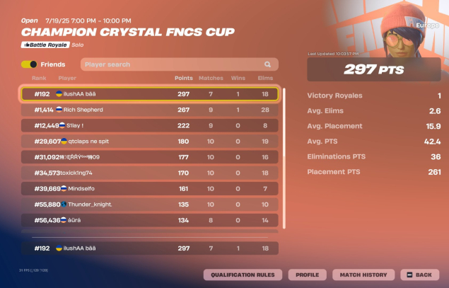 — Забрал большое количество скинов / кирок с турниров клиентам.