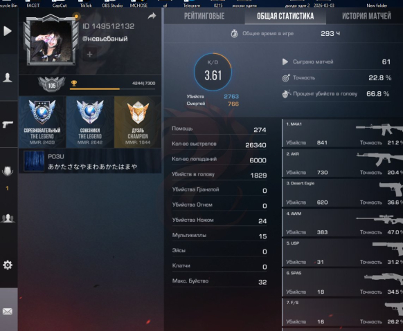 Звание: LegendКраткое описание: ⏳олд аккаунт⏳, 🎥 напы 2600 мм 2450🎥🔥105 𝑳𝐕𝑳🔥, ⏳300⏳
