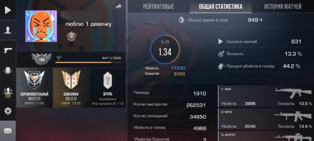 — K/D (убийства/смерти): 1.34