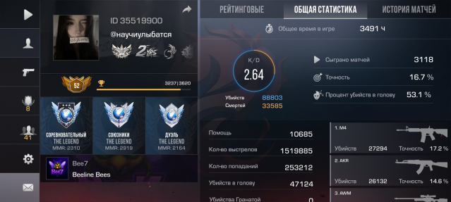Звание: LegendКраткое описание: клан Bee7 навсегда, 3500ч, 2900 ммр чистые без говна
