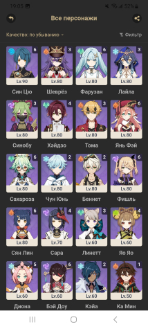 В Genshin: Так же на многих легах полная прокачка. Сюжет закончен на Фонтейне. Есть сигны на Арлекино, Нёвилетта, Кадзуху, Ху Тао, Гань Юй.