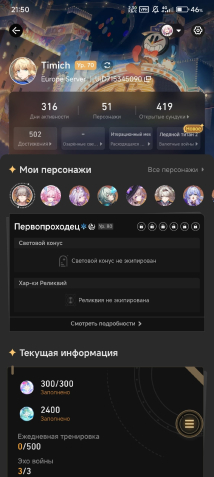 Подробное описание: 70 ранг. Играю с релиза. Персонажей и конусы приложу ниже в виде скринов. Честно, не знаю что именно тут написать, если вас интересует что конкретное, то напишите в лс — с радостью отвечу и пришлю еще скрины. Если вдруг интересно, немного играл в геншин (14 ранг), не понравилось. Поиграл в ZZZ (42 ранг), персонажей покажу скрином. Продаю из-за того, что желание играть пропало.