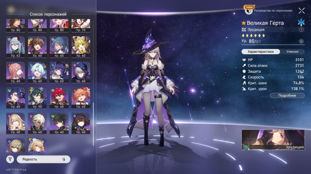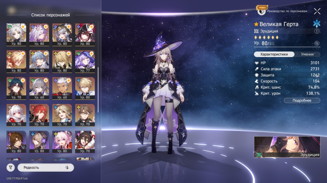Подробное описание: 5 ЗВЕЗДОЧНЫЕ ПЕРСОНАЖИ⭐⭐⭐⭐⭐- Кастория, Темень, Кирена Е1, Трибби Е1, Гиацина, Яо Гуан Е1, Искорка, Фаенон, Дань хэн опустошитель, Гисиленса, Ахерон, Зарянка, Фуга, Мидей, Цзяоцю, Топаз, Аглая, Фэйсяо, Керидра, Цифер, Яшма, Воскресенье, Авантюрин, Лоча, Жуань Мэй, Блэйд, Арчер, Гепард Е2, Клара Е2, Химеко, Вельт Е1, Яньцин Е1, Броня, Великая Герта, Черный Лебедь(UPD. Искра)