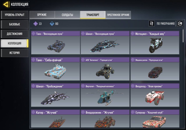 💥 — ТРАНСПОРТ: 13 ЭПИК, 80 РЕДКИЙ