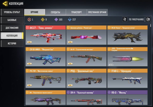 🍊 ОРУЖИЕ: 1 МИФИК; 9 ЛЕГА; 160 ЭПИК🟪, 217 РЕДКИЙ🟦