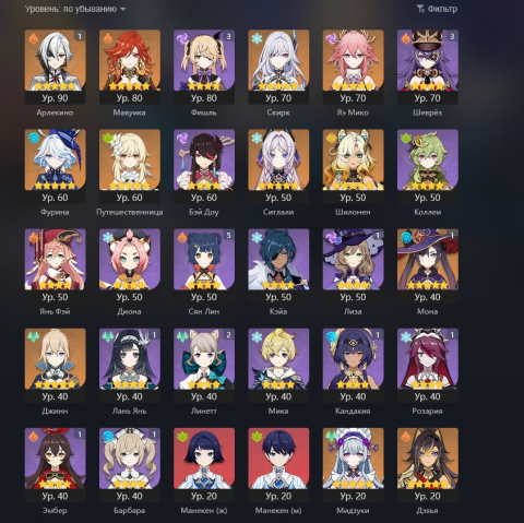 Краткое описание: Личный аккаунт| Europe | Арлекино с1 + сигна, Мавуика + меч из бп, Скирк, Ситлали, Шилонен, Фурина