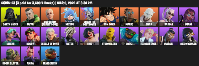 Скины/Кирки/Эмоции/Дельтапланы есть на фотках