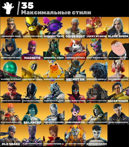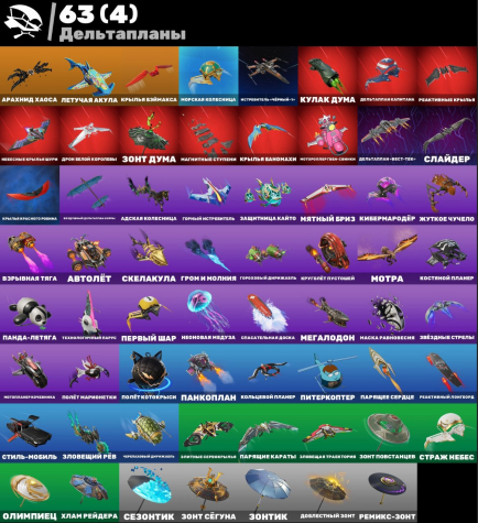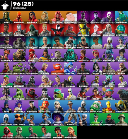 📊 Детали аккаунта: 🛑96 скинов · 29 платных ≈ 37 500 V-Bucks🎒125 кирок · 18 платных ≈ 12 400 V-Bucks🎒71 танец · 12 платных ≈ 4 700 V-Bucks🎒105 дельтапланов 🎒1 394 Уровень