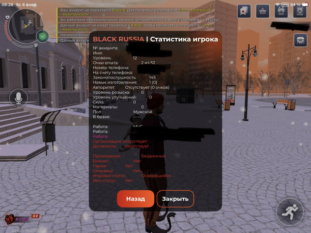 Сервер: №08 PinkУровень: 12