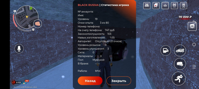 Краткое описание: 19 лвл с 555 BC🪙! Машиной за 2.5кк🚘, вещями, оружием и +100 законкой 👮♂️.