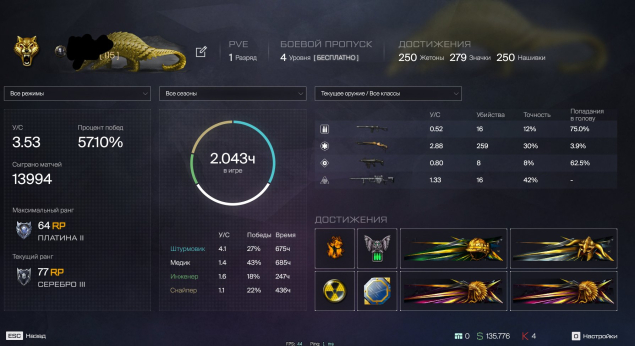 💎ТОПОВЫЙ💎МЕТА💎ЗОЛОТОЙ KRAL XM8 И ТД💎1К МЯСОРУБОК 💎750 БЕЗ СМЕРТЕЙ💎ПЕРВЫЕ ЛИГИ💎2К+ ЧАСОВ💎СКРИНЫ💎, 115 ранг