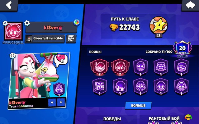 Краткое описание: 🎀ПРОДАЖА АКАУНТА В Brawl stars🎀🎀 НА АККЕ 22892 КУБКОВ🏆 И 71 БОЙЦОВ+8к БЛИНГОВ И МНОГО СКИНОВ🎀🎀