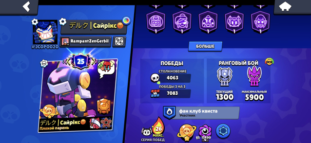 Подробное описание: 💎 ULTRA АКК | Brawl Stars 61K 🏆 | ВСЕ БОЙЦЫ + 10 ЛЕГ / 13 МИФ СКИНОВ | КУПЛЕНО МНОГО BRAWL PASS | Clash Royale 8212 🏆 | 4 ГЕРОЯ | 11 ЭВОЛЮЦИЙ | КУПЛЕНО МНОГО PASS ROYALE, -10КГЕМОВ