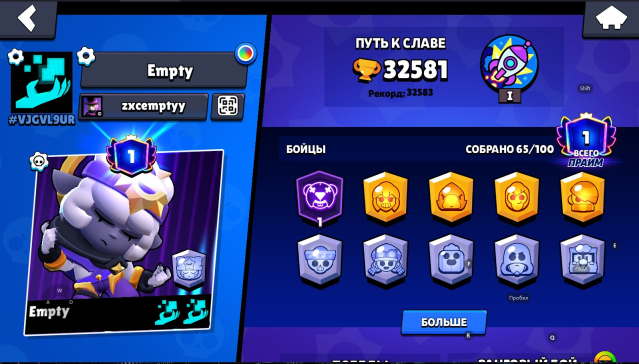 Срочно продаю старый аккаунт по низкой цене, 32581 кубков, 65 бравлеров