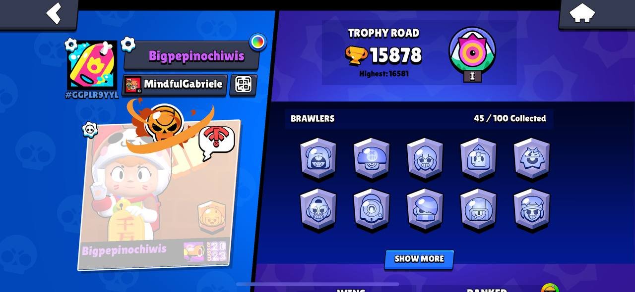 Краткое описание: 15 к🏆, 45 бравлеров, 3 леги, 70 гемов, описание👇