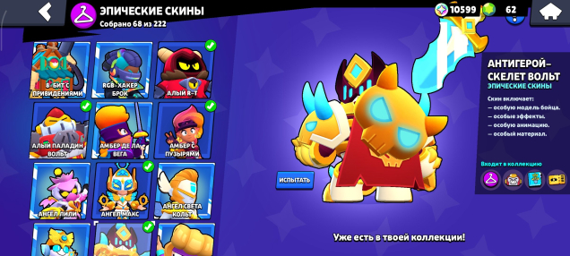 Подробное описание: Акк фулловый, 25 гиперов, есть много олдовых скинов которые уже не достать, пройдено 40 уровней бравл паса