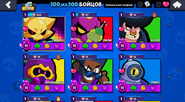 Кубков: 58Бравлеров: 100