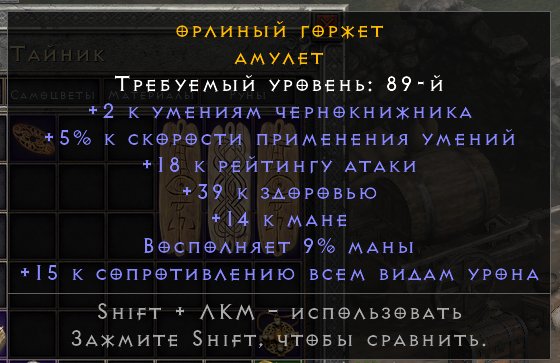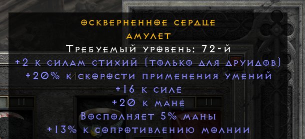 Так же есть 💎Amulet💎 +2 к стихийным навыкам друидов 20fcr 16str 20mp 5%mreg 13lightres (1000р)