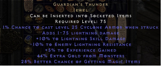 Подробное описание: 🔥🔥🔥Гром Стража 🔥🔥🔥(ThunderGuardianJewel)+10lightdmg-10lightres+5exp+28mf+44gf Редкий 💀