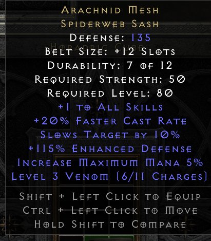 Arachnid Mesh 135d 115% ed, Доспехи, Пояс