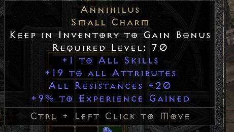 Краткое описание: ⭐️ Annihilus 19 att 20 res 9% exp⭐️Sorc hellfire torch 18 attr 18 resist цена за 1 предмет