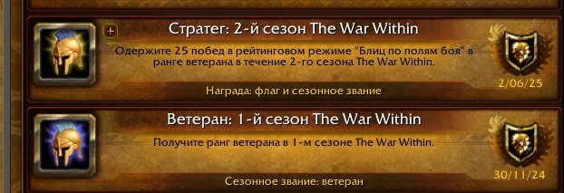 Подробное описание: Продаю так как нужны деньги. На аккаунте 14 максимально прокачанных на момент TWW персонажей, куплен Midnight. Аккаунт создавался ради pvp, но есть много эксклюзивных достижений в PvE контенте. Имеются 3 эксклюзивные pvp накидки, сеты оружия и брони, чары на оружие, получаемые в ходе 3 сезонов TWW на многих персонажах, сезонные pvp игрушки за стратега. На аккаунте имеется Позолоченный брутозавр торговца, всего на аккаунте 164 маунта. На аккаунте играл в основном в хил спеках персонажей, если интересует, в личных сообщениях могу более подробно описать со скриншотами. На момент выставления лота (11.03) остается 22 дня подписки.