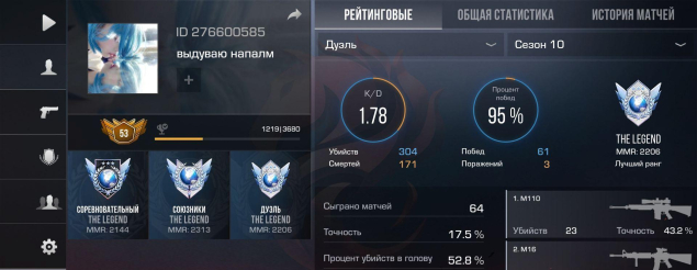 Продам аккаунт со званиями легенда во всех режимах. Основная и единственная привязка на аккаунте это Google, там полностью отсутствуют привязки на мой данные, вам остаётся просто зайти на аккаунт и поменять пароль, также включите двухфакторную аутентификацию если хотите полностью обезопаситься.