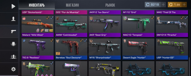 на акаунте имеется 2 сета с двумя ножами,2 топовых калаша, общая сумма инвента состовляет 20к голды, так же лидерка в клане, так же имеется 8 тысяч серебра, что очень много