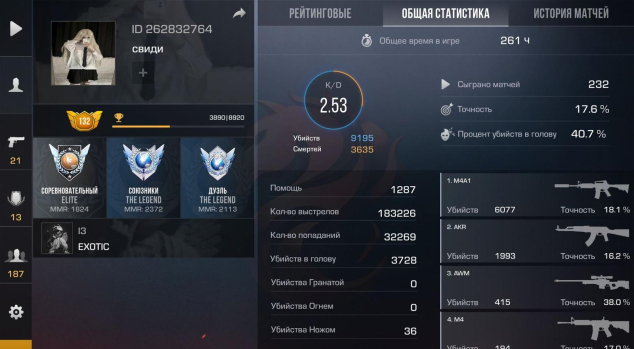 Продаю лучший аккаунт с трипл Легой. На аккаунте три ножа, двое пар перчаток, калаш генесис ст, лучший френдлист из топ плееров и лучший медийный клан