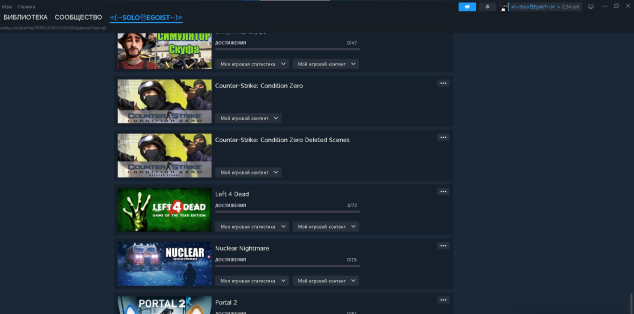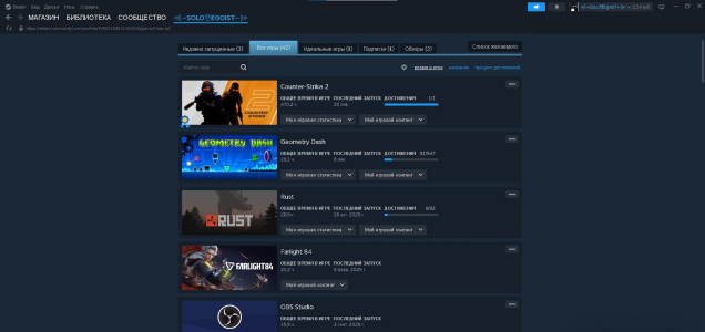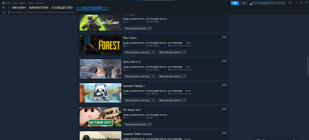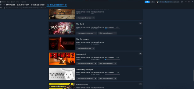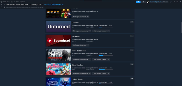 раст блокировка с ничиго играл было много жалоб пытался разблокать через апиляцию но не получилось есть metro redux в (кс2 прайм куплен) есть raft, repo, Buckshot Roulette,The Long Dark,Poly Bridge,The Gunk,Counter-Strike1.6 ,Left 4 Dead, Nuclear Nightmare, The Walking Dead: A New Frontier, RV There Yet? ,The Forest, Hollow Knight, Slime Rancher, Soundpad, Geometry Dash, Rust, Counter-Strike 2 есть прайм