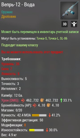 Сервер: RU-1Краткое описание: Вепрь-12 M8, урон +33.1% 462-732 в краске «Вода» (Любой сервер)