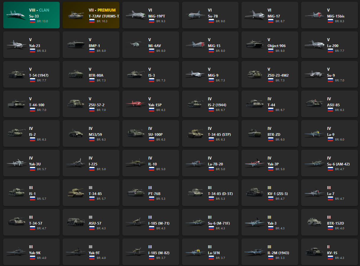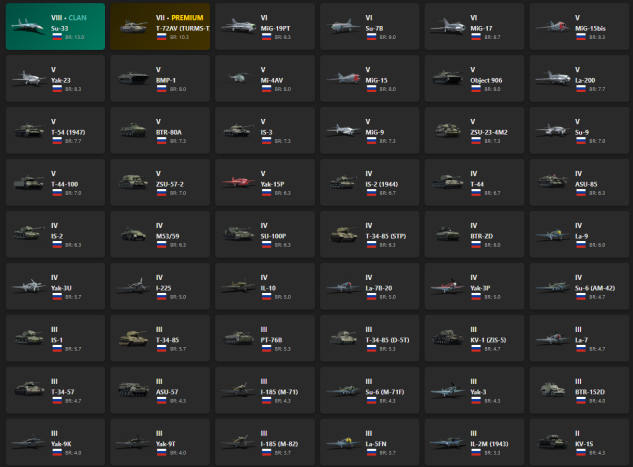 PIXSTORM. VIII - 1, VII - 1, VI - 3, V - 16 Su-33, T-72AV (TURMS-T), MiG-19PT, Su-7B, MiG-17, Yak-23, BMP-1