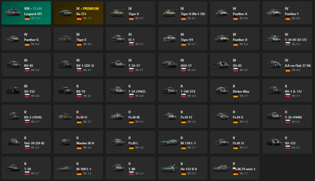 VIII - 1 Leopard 2PL, Ru 251, Tiger II, Tiger II (Nr.1-50), Panther A, Panther F, Panther G, Tiger E, IS-1, Tiger H1